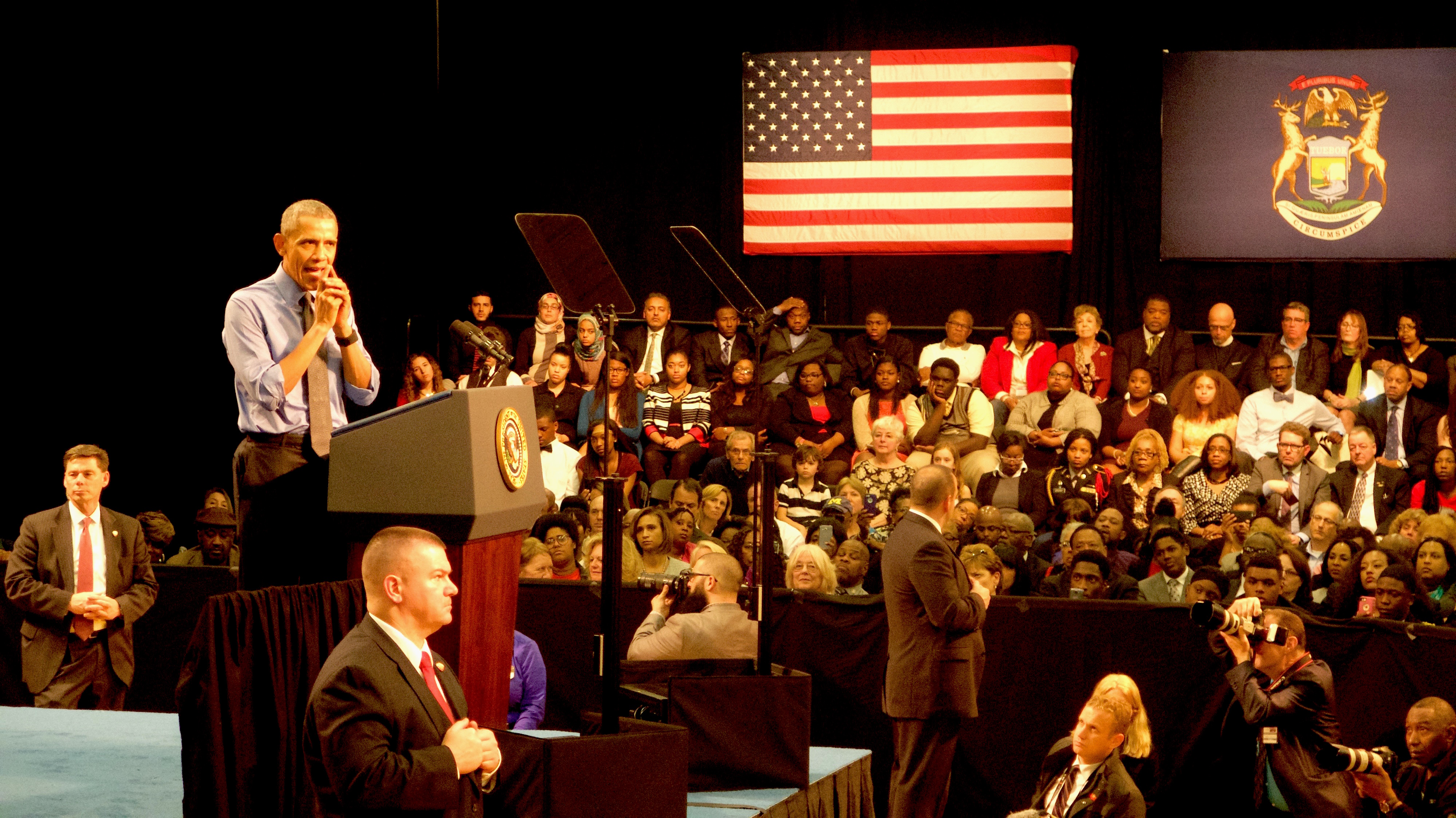 The president had two missions during his Wednesday meetings here. The first was to listen to residents and assure them that he is personally leading the government project to replace lead water lines and make Flint’s drinking water safe again. Obama said he rode in the presidential limousine with Flint’s Democratic Mayor Karen Weaver, and Republican Governor Rick Snyder, to assure that he and they were collaborating on the project.